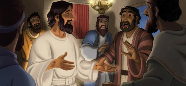 Luke 24:36-43. 36As (he disciples) were talking about these things, Jesus himself stood among them, and said to them, “Peace to you!” 37But they were