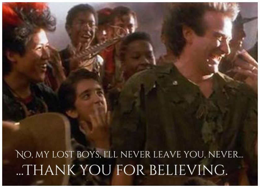 Watch the end of Hook together in the clip below. Listen for Peter saying “Thank you for believing” at the end. Jesus also wants us to simply believe. Also note how Peter tells the Lost Boys to look out for others – like Jesus telling us to “love one another.” Believing IN Jesus will result in loving LIKE Jesus.