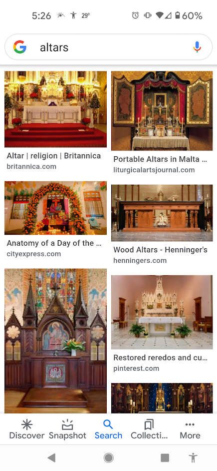 Look on google for pictures of altars. Notice how many churches and even people’s homes have altars. Talk about how the cross of Jesus is the final altar that we need. No more sacrifices are needed. So churches and houses don’t need altars anymore.