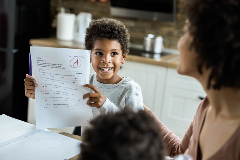 Look at your child’s homework together. Talk about why it’s so important to do our own homework so that we can learn the material. But talk about how obeying God’s law is something that none of us could ever do, so Jesus did it for us – he did our homework for us so that we could get the same grade he gets. A+