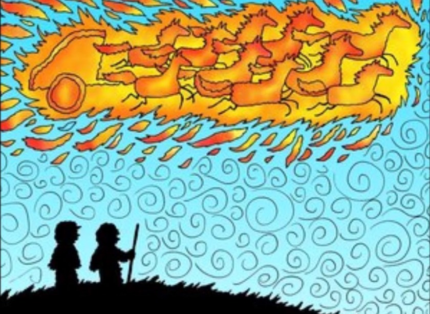 Elijah was taken up into heaven by flaming chariots and horsemen. That’s pretty awesome isn’t it? And not just because there were flaming chariots and horsemen, but because Elijah didn’t die, he just went straight to heaven to be with God forever.