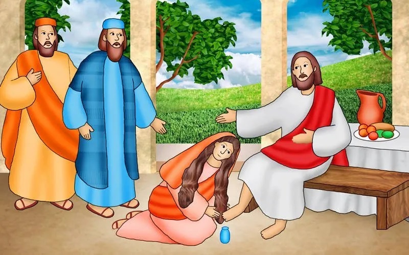 John 12:1-3. 1Six days before the Passover, Jesus therefore came to Bethany, where Lazarus was, whom Jesus had raised from the dead. 2So they gave a dinner for him there. Martha served, and Lazarus was one of those reclining with him at table. 3Mary therefore took a pound of expensive ointment made from pure nard, and anointed the feet of Jesus and wiped his feet with her hair. The house was filled with the fragrance of the perfume.