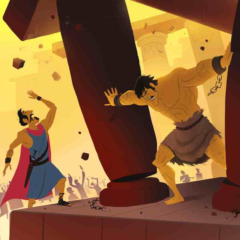 Judges 16:28-30. 28Then Samson prayed to the Lord, “Sovereign Lord, remember me again. O God, please strengthen me just one more time…” 29Then Samson put his hands on the two center pillars that held up the temple. Pushing against them with both hands, 30… And the temple crashed down.