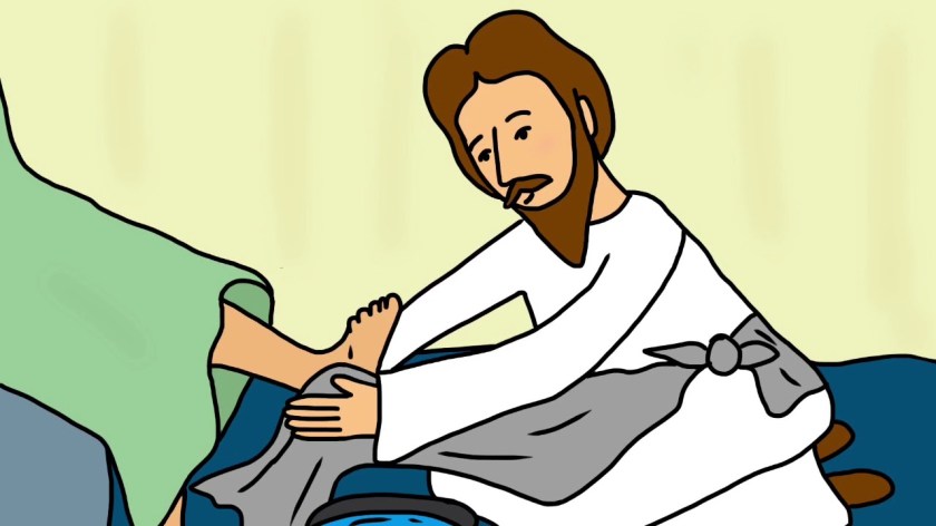 But Jesus wasn’t giving his disciples one more rule to follow. He was explaining the entire Christian life. This is what life is all about – loving others. Jesus demonstrated his love for them by washing their feet that night. Back then people wore sandals and they walked everywhere. So their feet got very dirty and stinky. Usually the lowest servant would take off everyone’s sandals and wash feet, but on this Thursday night Jesus did it! Jesus took the place of the lowest servant and washed everyone’s feet. Why? To show us what love looks like, what serving looks like, and even what forgiving looks like.
