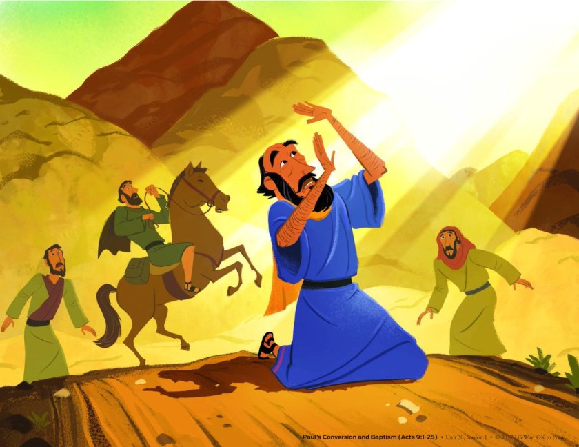 But then one day Saul saw Jesus. While Saul was travelling down the road, suddenly a bright light blinded him. Yes, it literally blinded him for three days. Then Saul heard the voice of Jesus. He said, “Saul why are you persecuting me?” Saul said, “Who are you, Lord?” And Jesus said, “I’m Jesus. Now go to the city and wait for instructions.”